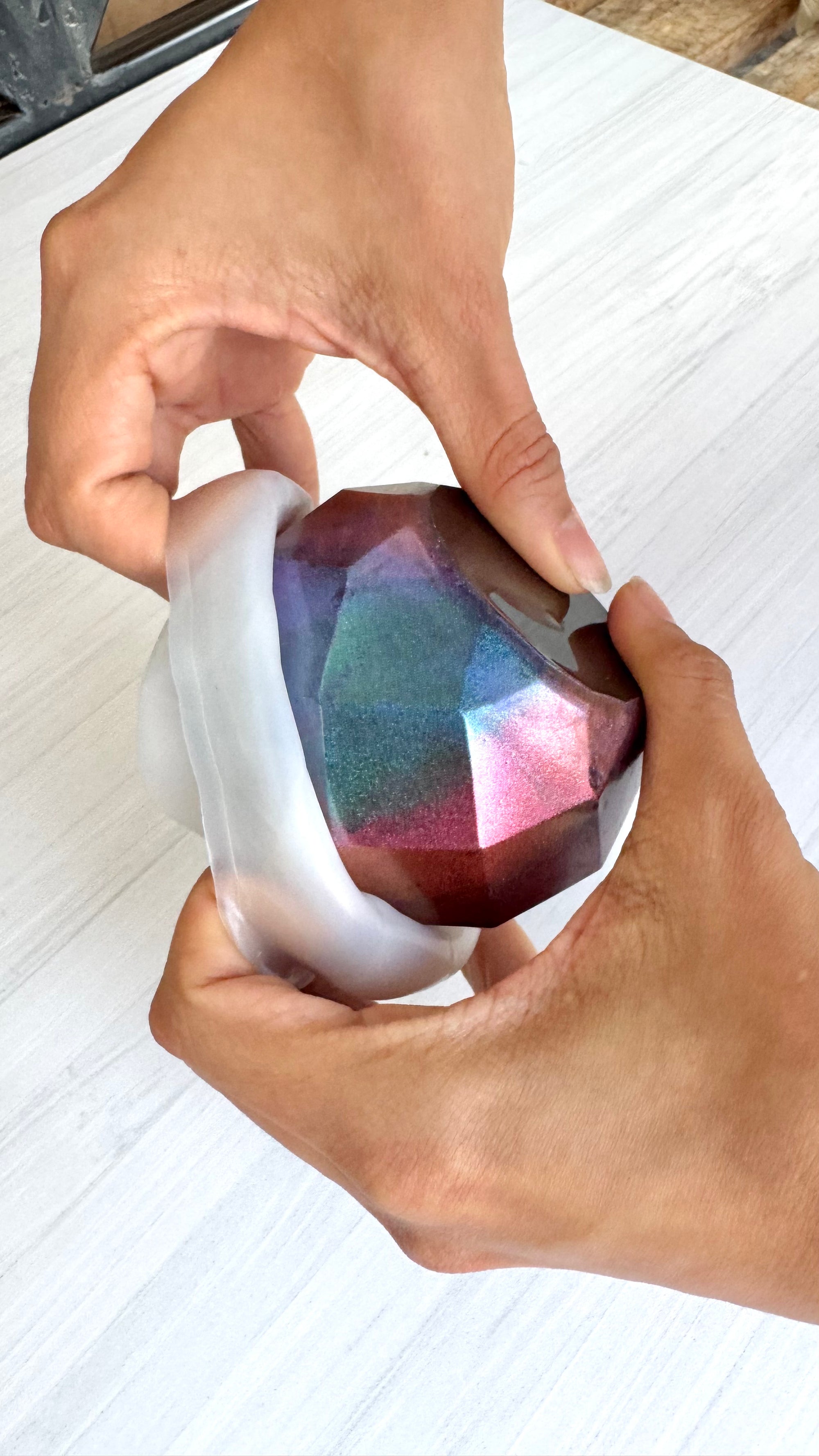 Antiadherente, firme, fácil de limpiar y de desmoldar. Solo necesitas torcer el molde de silicona y liberar tu creación cuando la resina esté completamente curada.