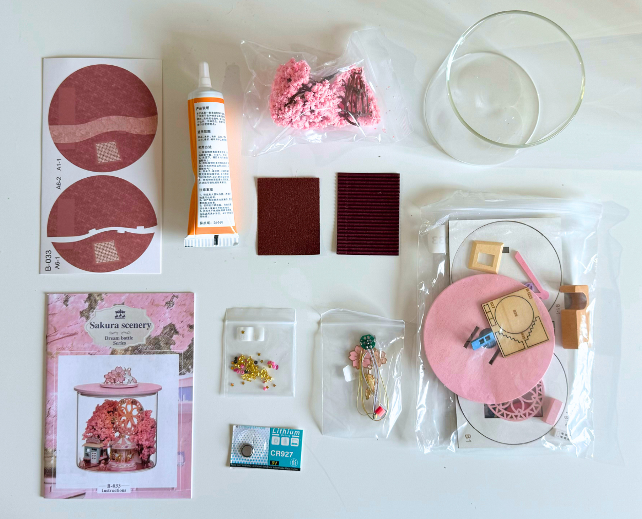 Este kit en miniatura te permite construir una escena encantadora dentro de un elegante frasco de vidrio. Incluye muebles, plantas y piezas decorativas para armar.